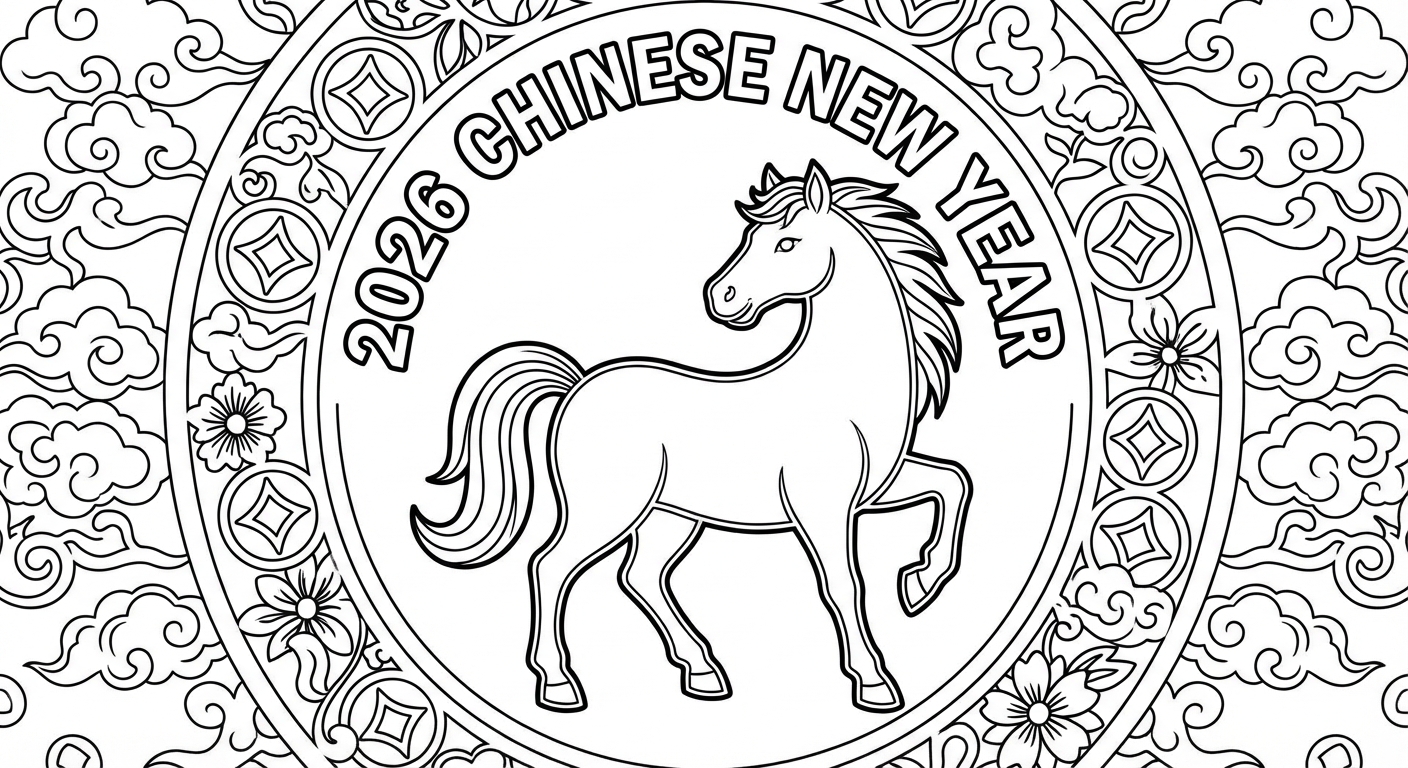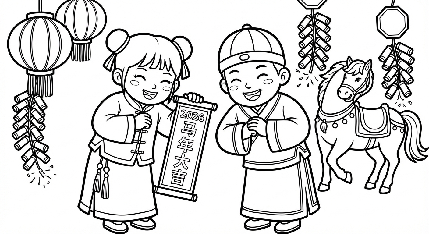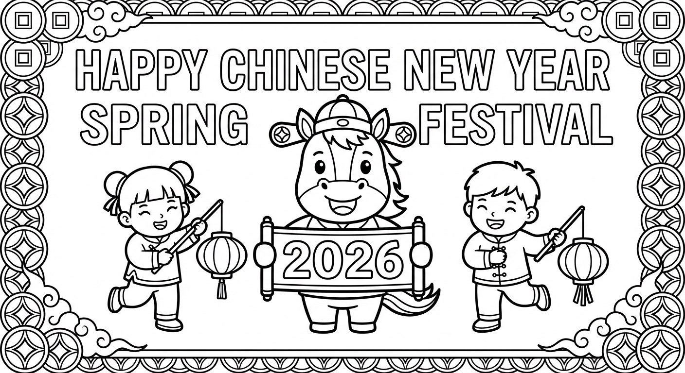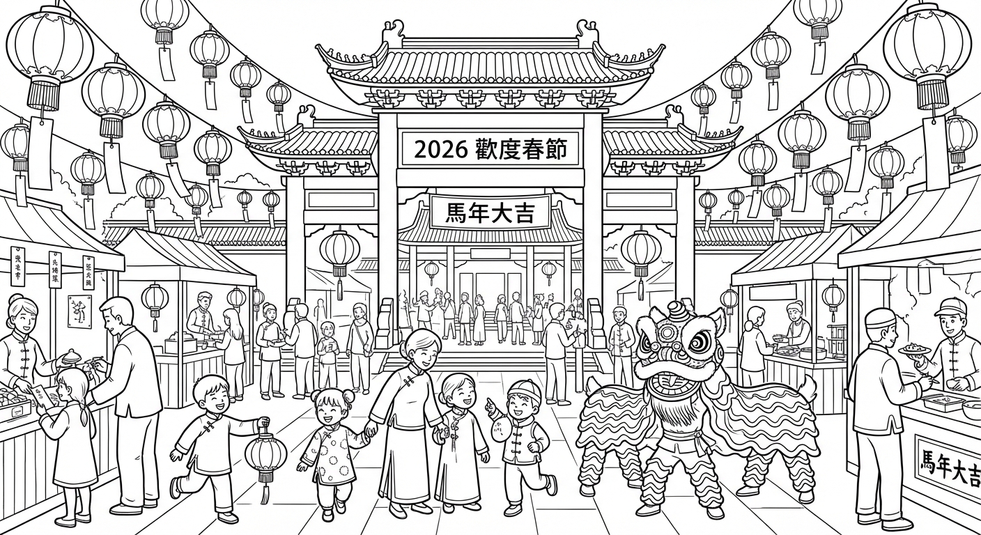 免费可打印Spring Festival 2026涂色页(PDF & PNG),立即下载