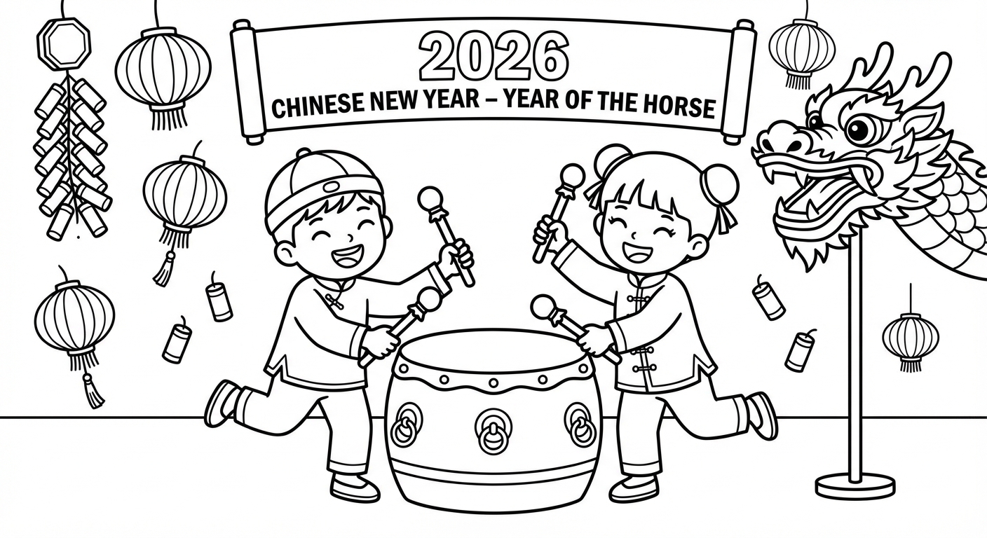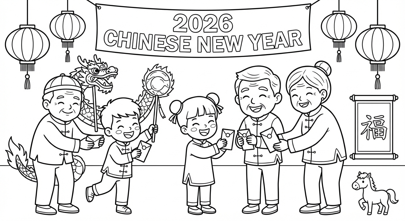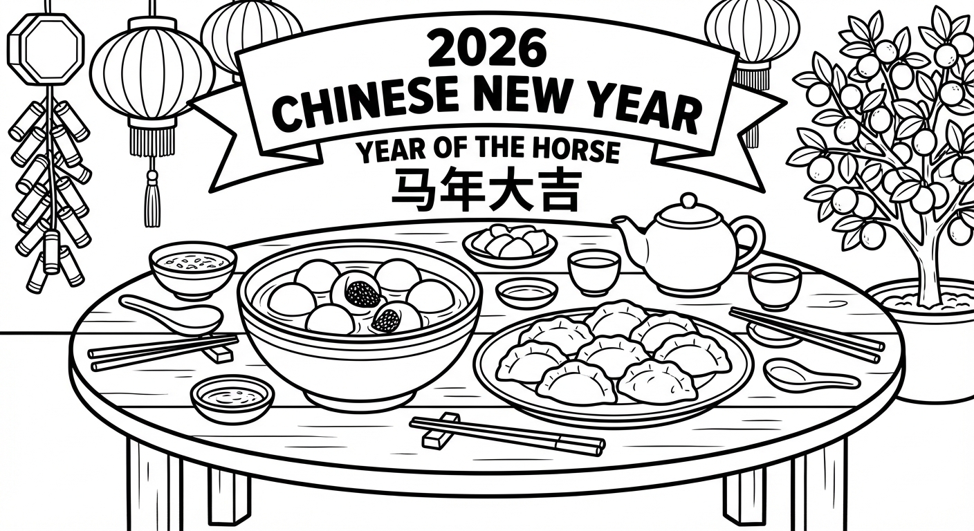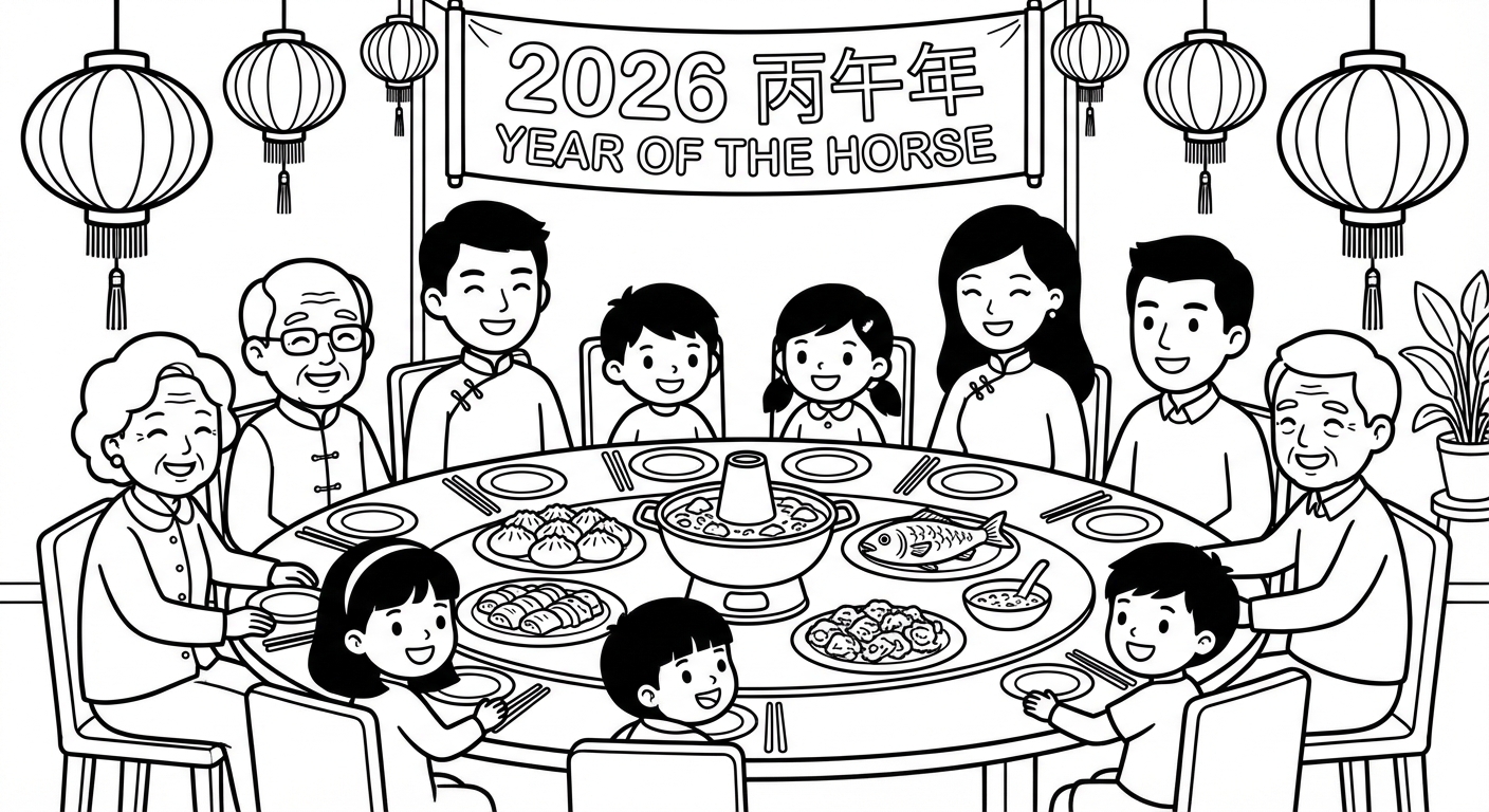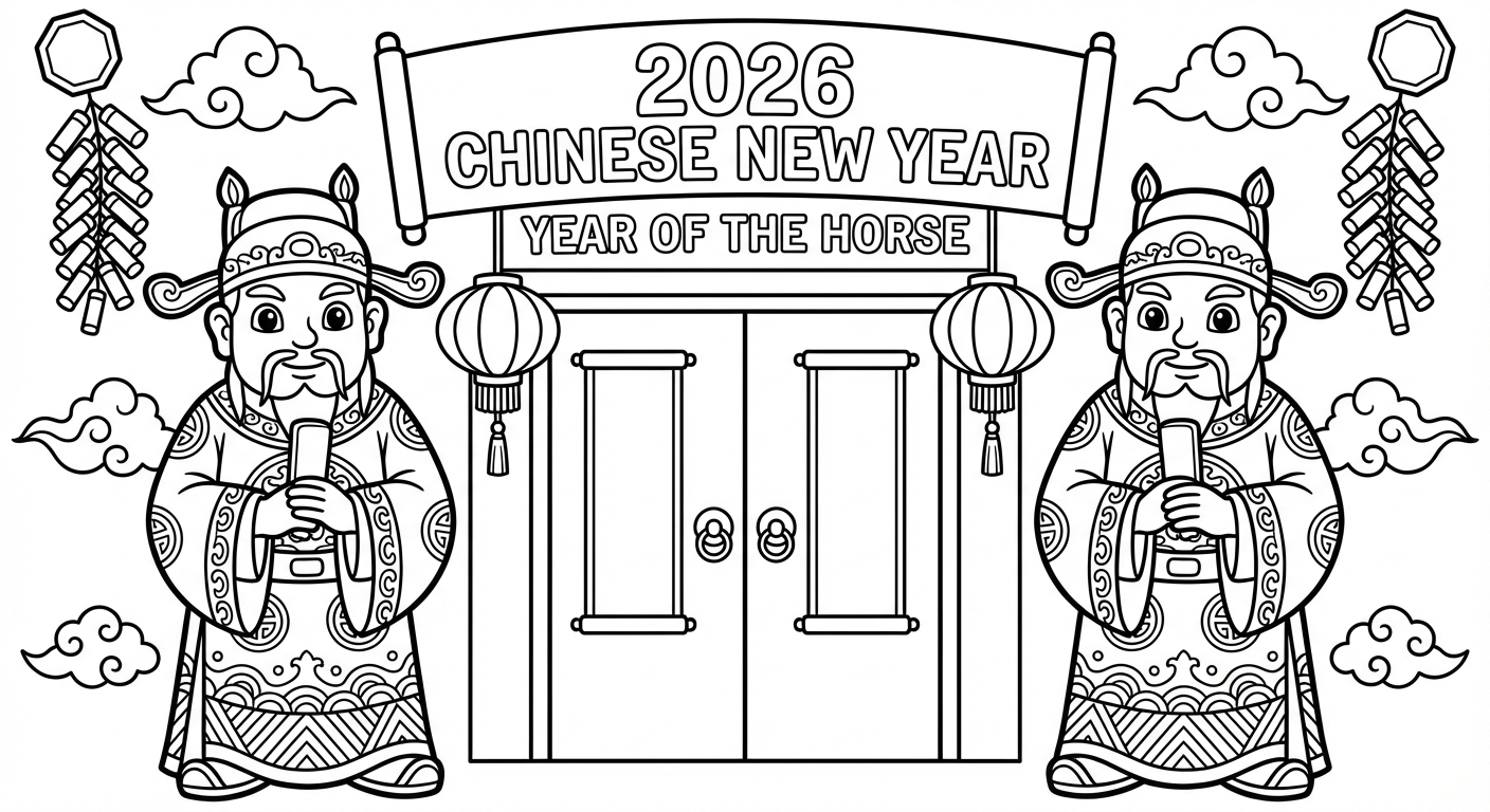 免费可打印Spring Festival 2026涂色页(PDF & PNG),立即下载
